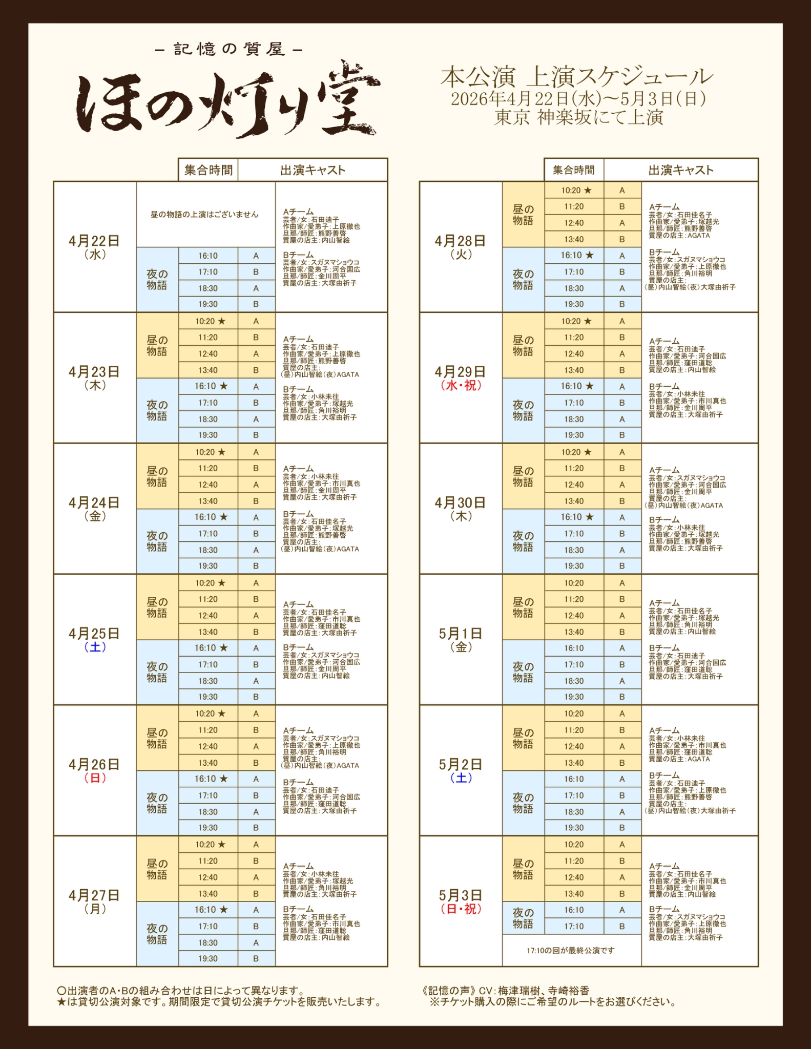 ・公演情報などに変更が生じる場合がございますので、あらかじめご了承ください。その際には、こちらのサイトで随時お知らせいたします。